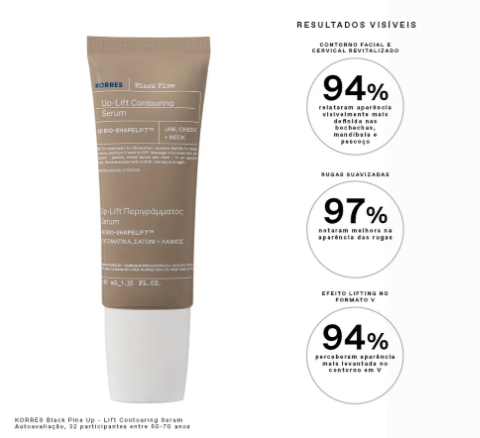 Redefina o contorno do rosto e pescoço com o sérum lifting Black Pine da Korres. Um tratamento anti-idade potente, vegano e testado dermatologicamente, com aplicador roller de esfera metálica para efeito lifting imediato.